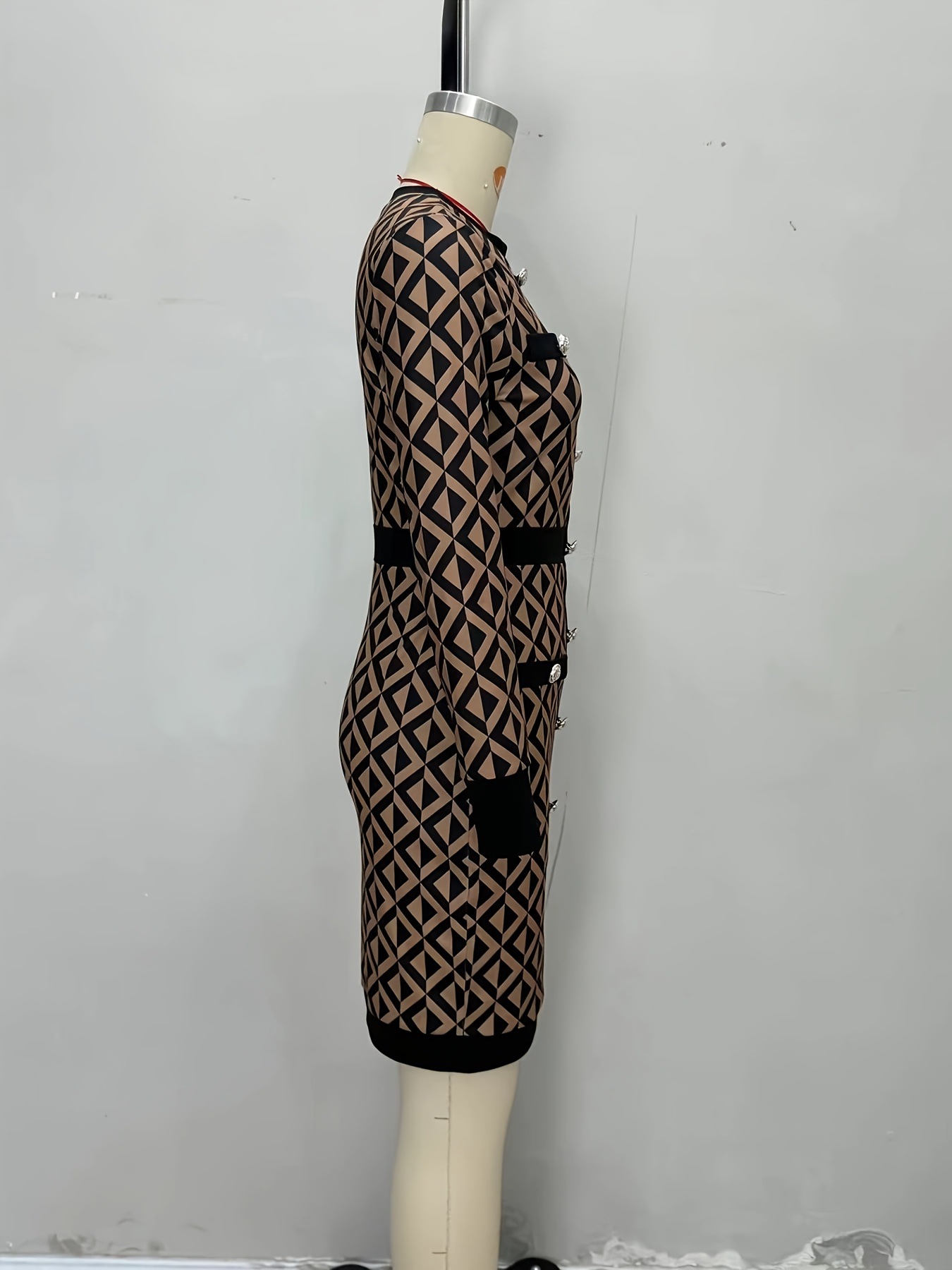 Gebreide Jurk Dames Zwart - Kokerjurk met Ruitpatroon