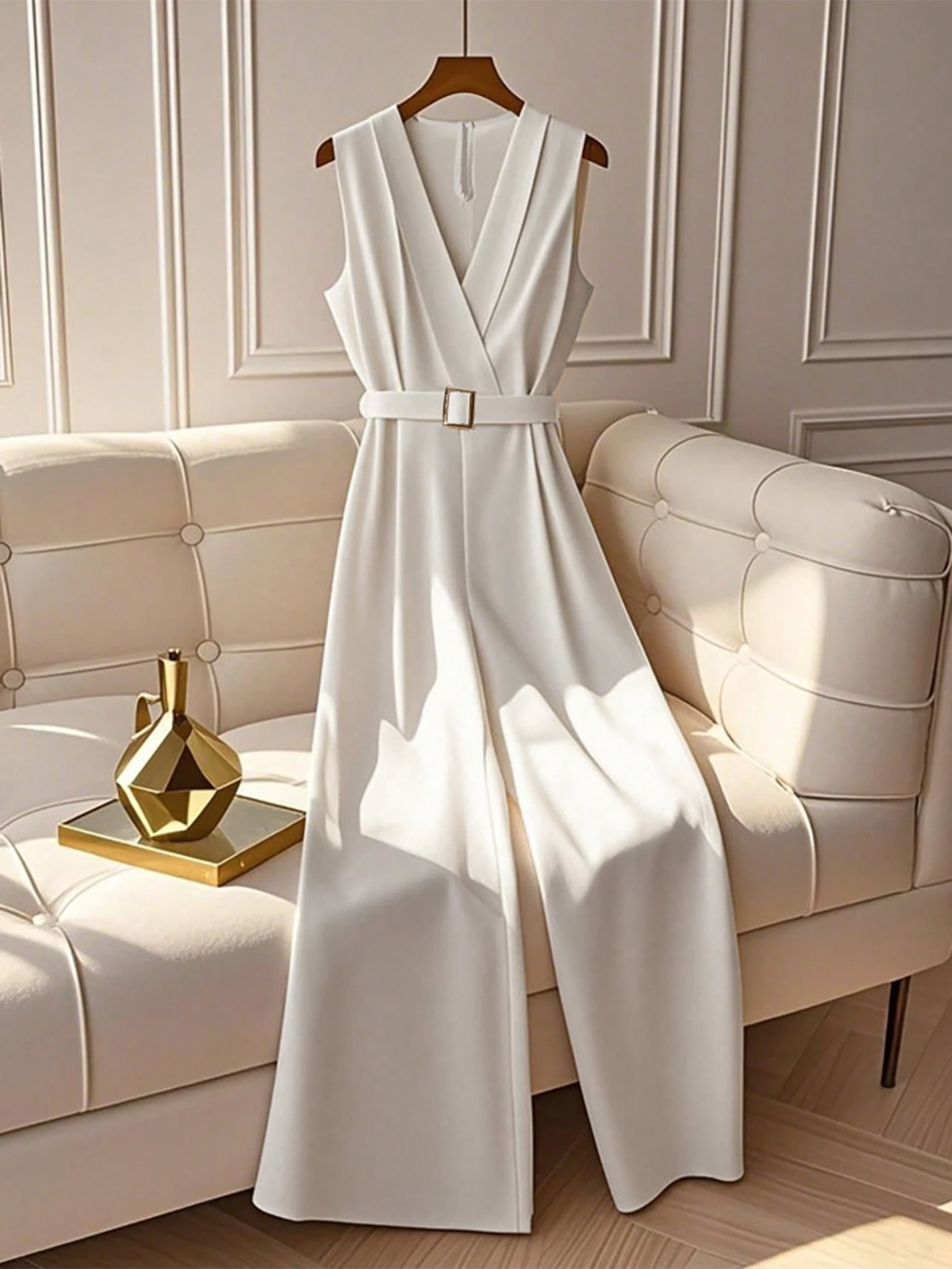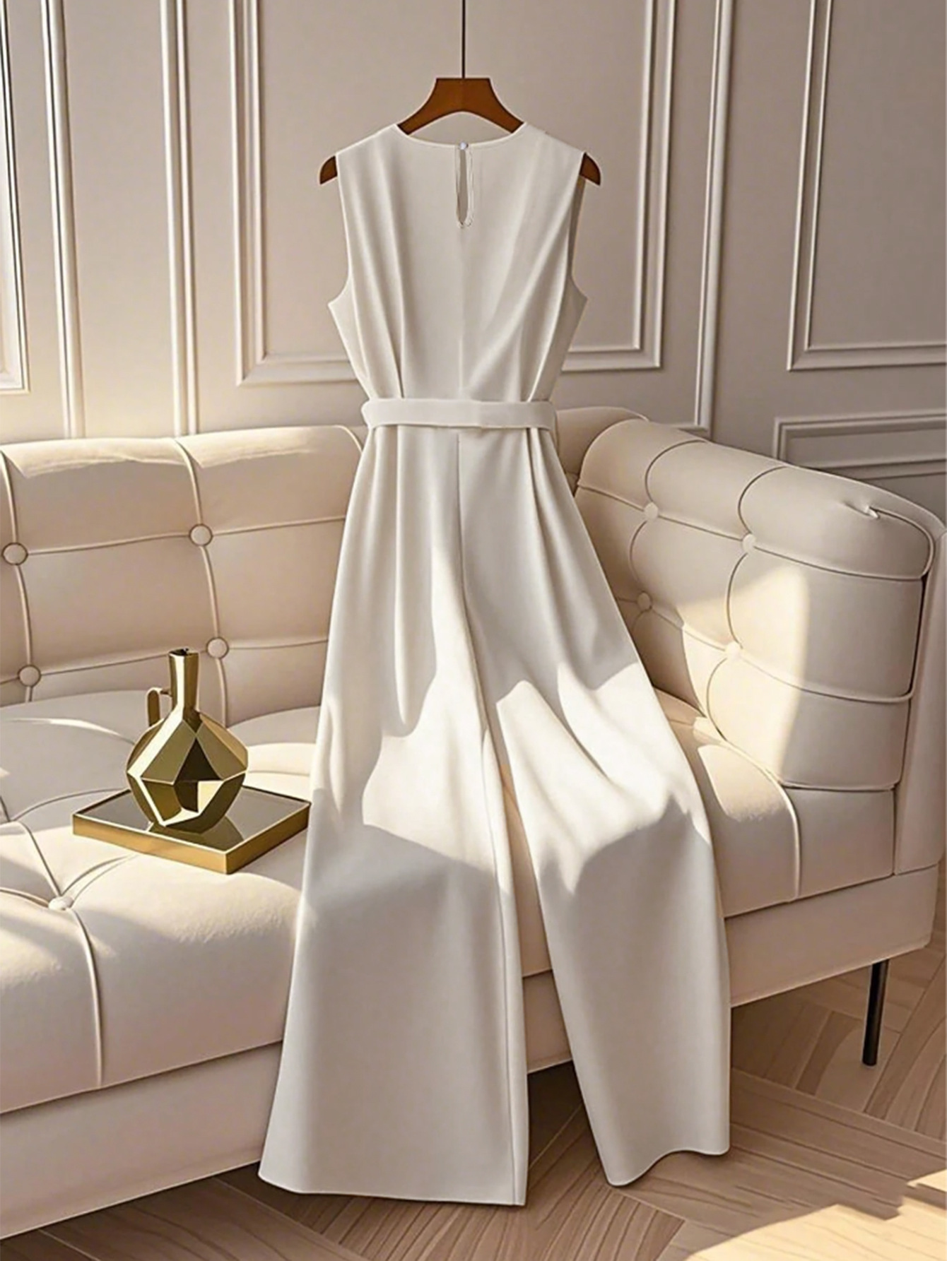 Maak een onuitwisbare indruk met de Ivory Muse Jumpsuit. Dit prachtige item combineert een strak, mouwloos design met een flatterende high-waist pasvorm die je benen eindeloos laat lijken. De artistieke snit en de smetteloze witte kleur stralen een tijdloze klasse uit, perfect voor een zomerse bruiloft, een chic tuinfeest of een zakelijk event waar je net dat beetje extra wilt opvallen. Het is niet zomaar een jumpsuit; het is een modestatement dat vintage charme combineert met moderne power.